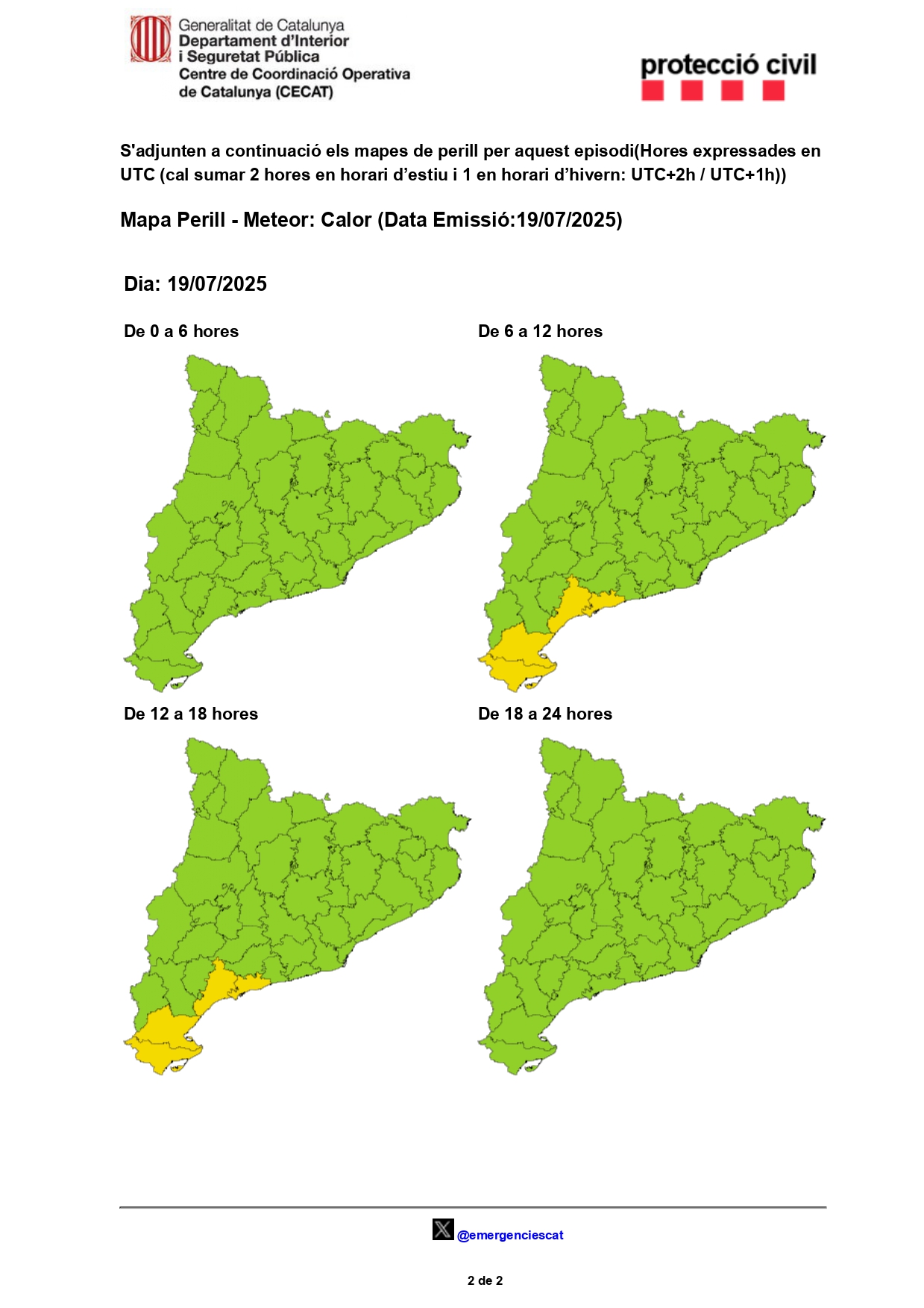 Es comunica que es manté l'avís de risc per per calor intensa, en base a les previsions