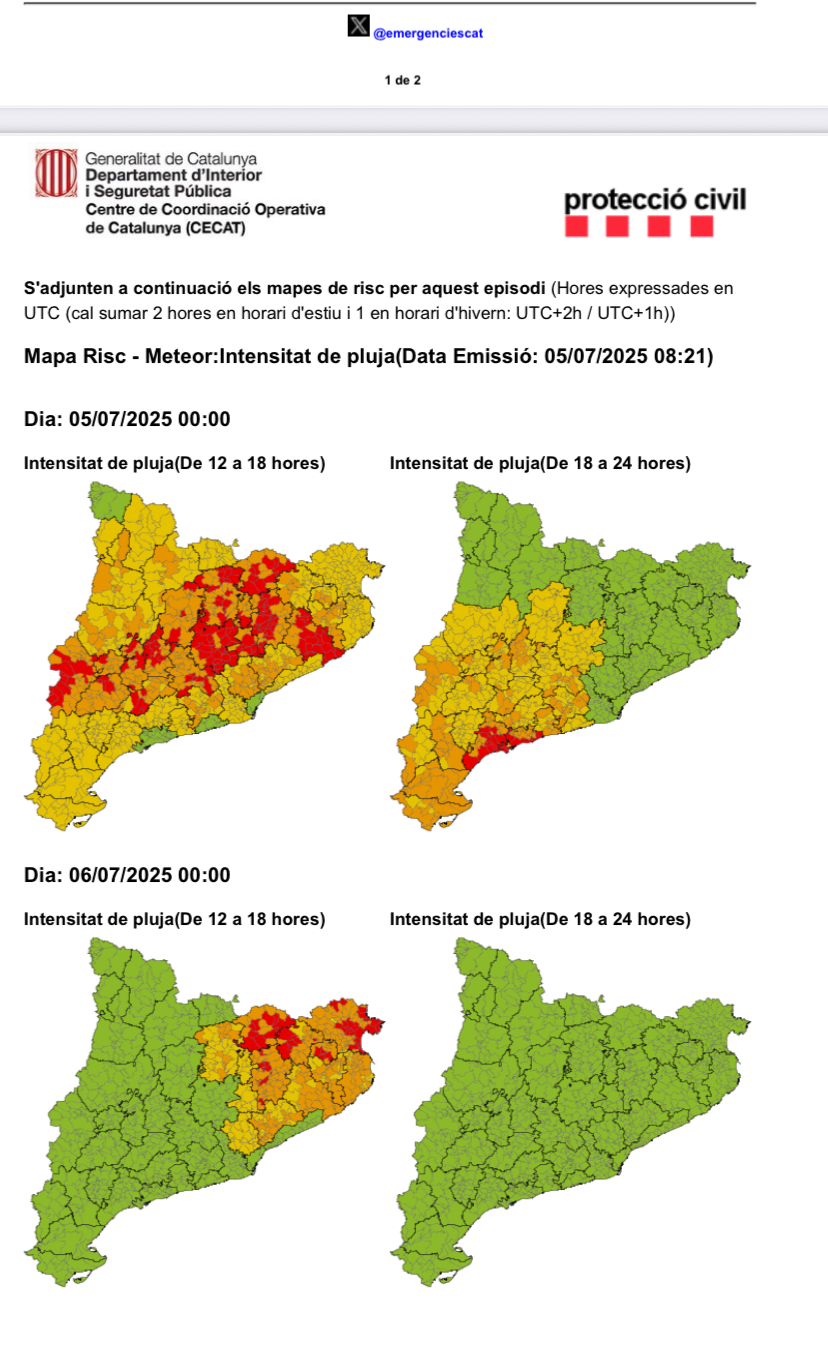 COMUNICAT D'ACTUALITZACIÓ DE LA FASE D' ALERTA DE L'INUNCAT #meteo #seguretat #lAldea Àrea: GovernacióImatge: