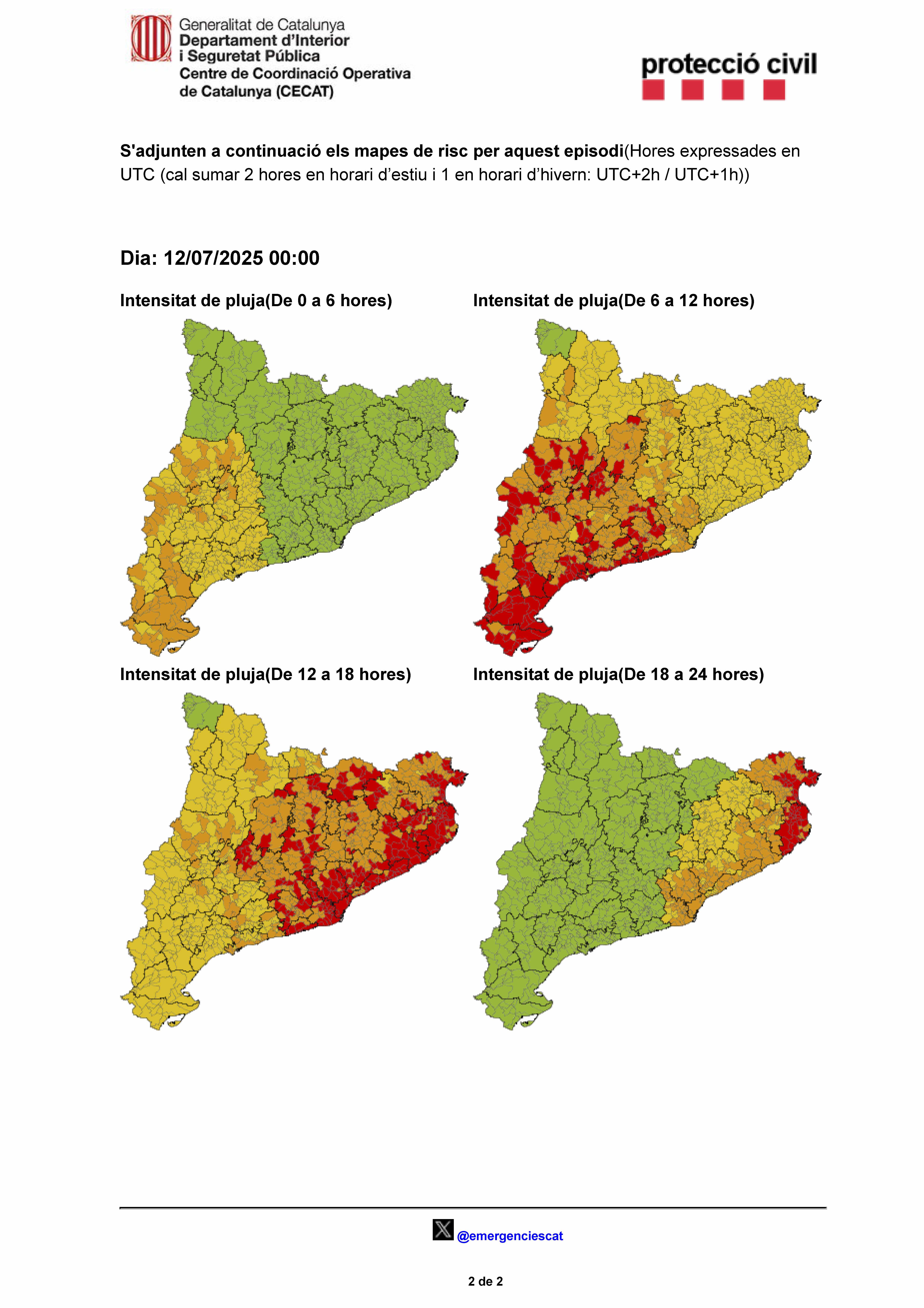COMUNICAT D'ACTUALITZACIÓ DE LA FASE D'ALERTA DE L'INUNCAT