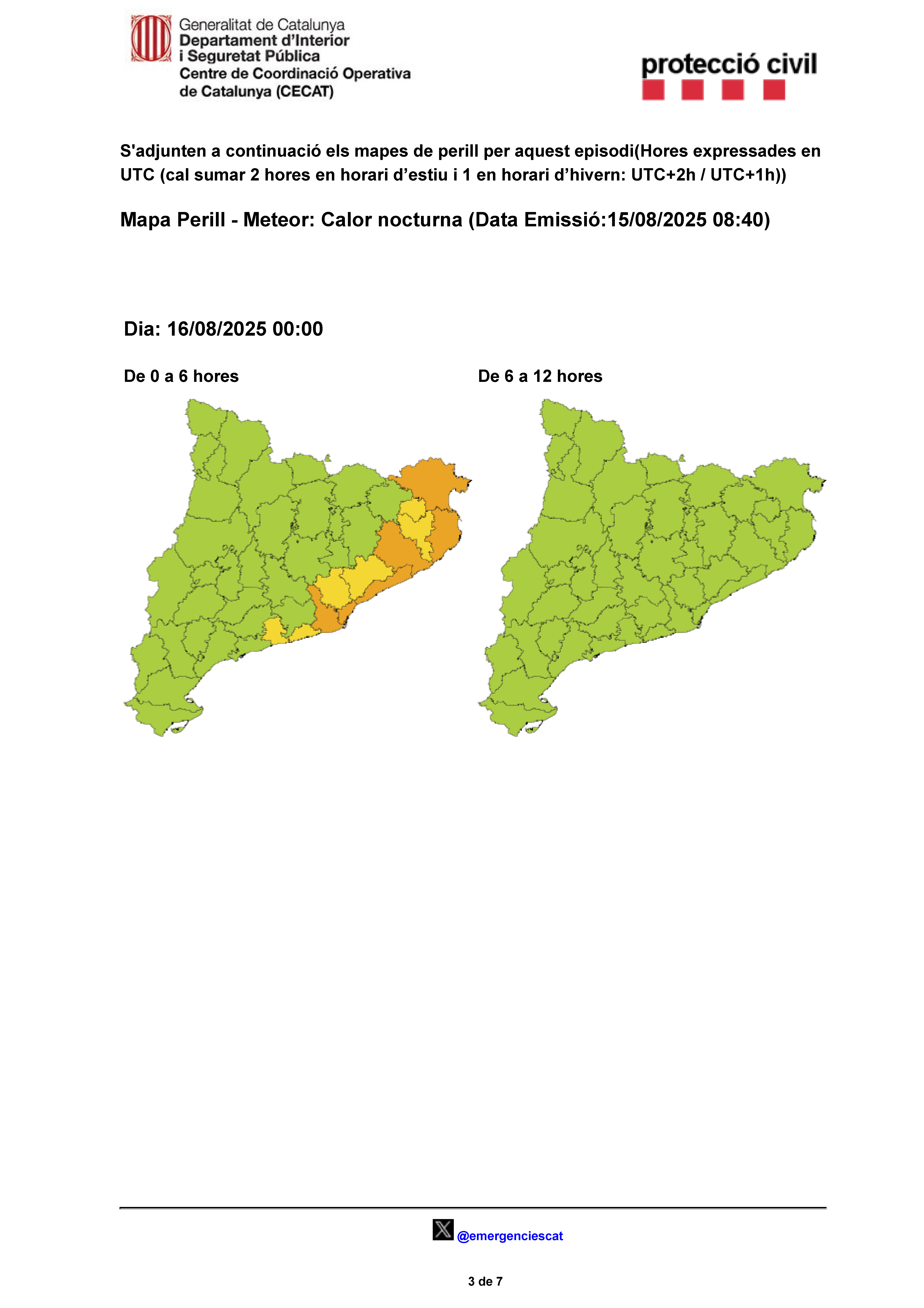 Es comunica que es manté activat el PROCICAT en fase d'ALERTA per calor molt intensa i per calor nocturna intensa els propers dies.