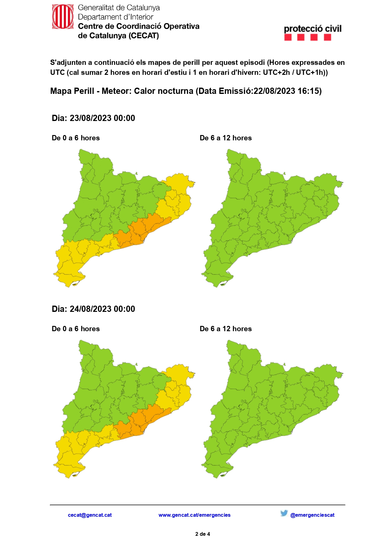 l'ALERTA del Pla de Protecció Civil de Catalunya (PROCICAT) per l'onada de calor que