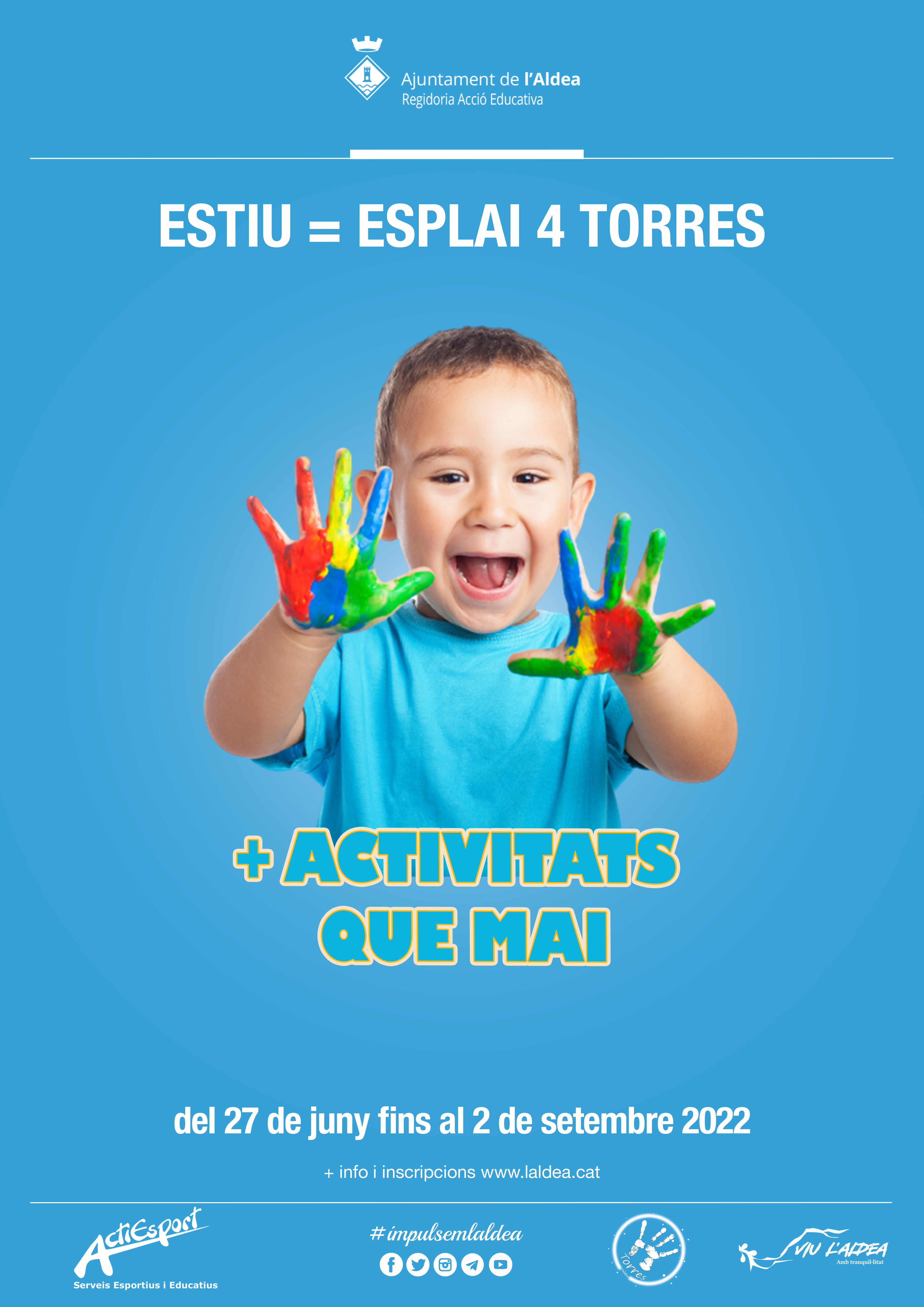 Arriben les vacances escolars i l’estiu i des de l’Ajuntament de l’Aldea hem organitzat diferents activitats per a que els nens i les nenes puguin gaudir d’un estiu plenament lliures i tornant a la normalitat tant desitjada per tots.