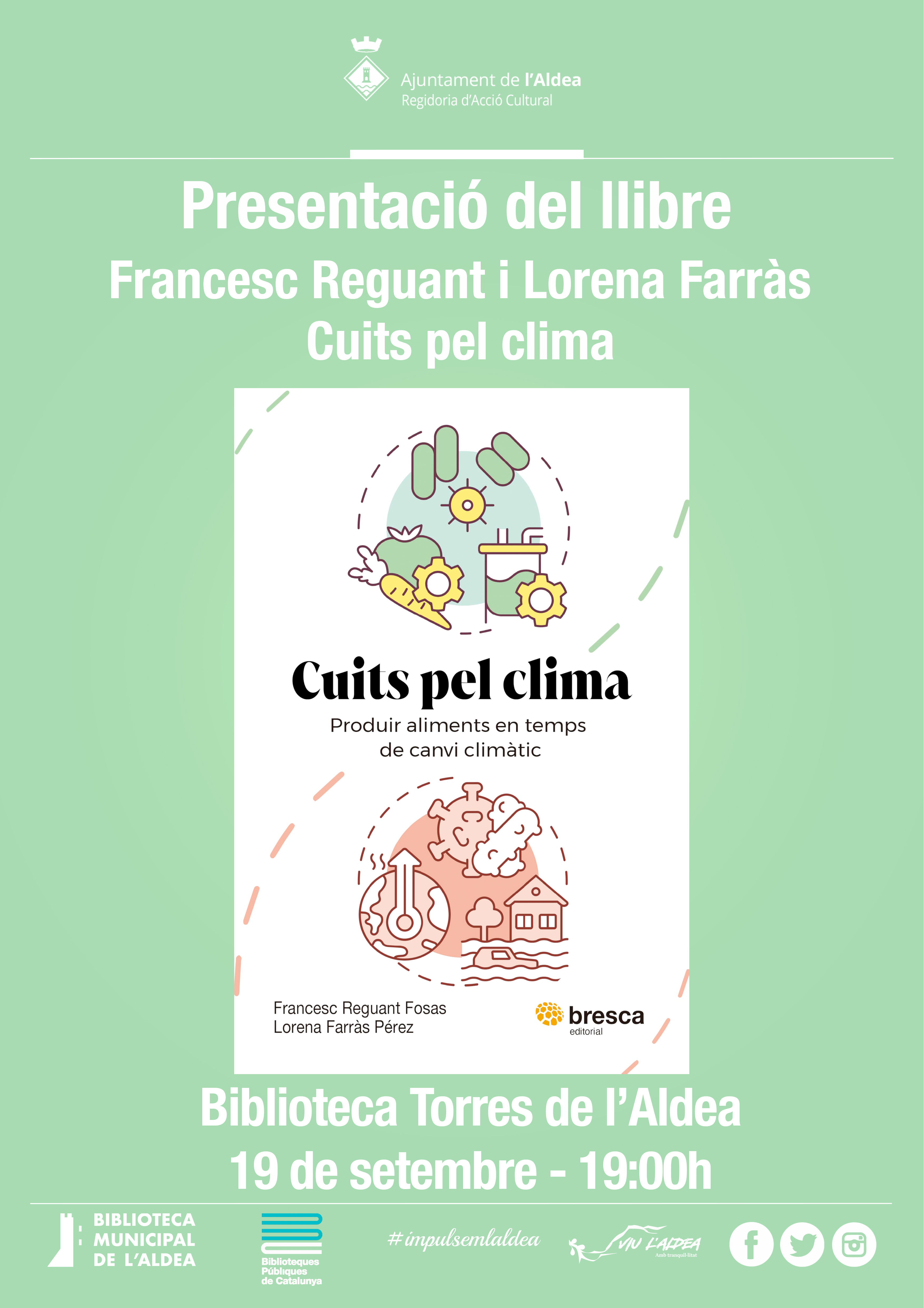 Recordeu que el divendres 19 de setembre tindrem la presentació del llibre “Cuits pel clima” a les 19:00 a la Biblioteca Municipal de l’Aldea.