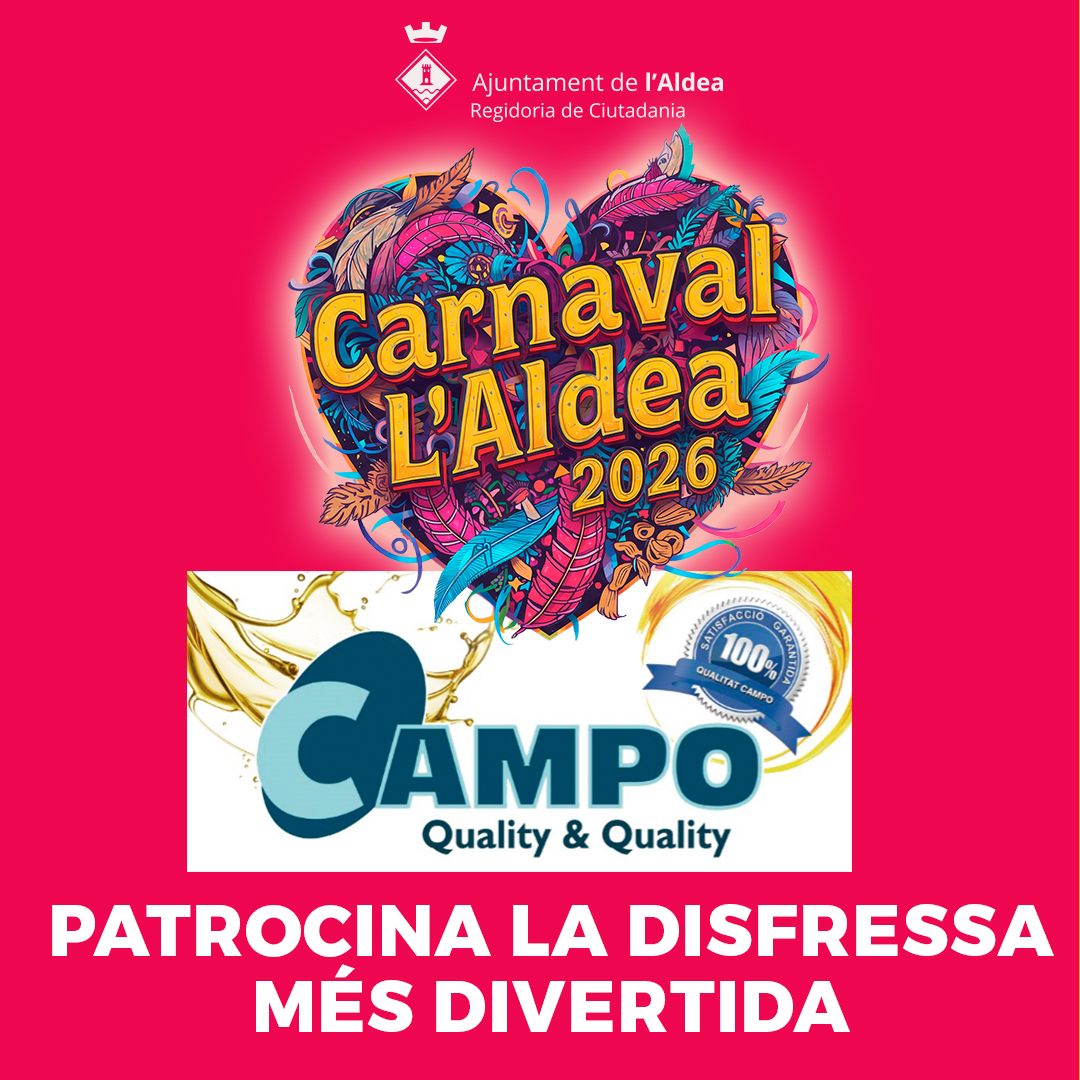 CAMPO patrocina un dels premis del Carnaval de l’Aldea 2026: el premi a la disfressa més divertida, la qual rebrà un obsequi.