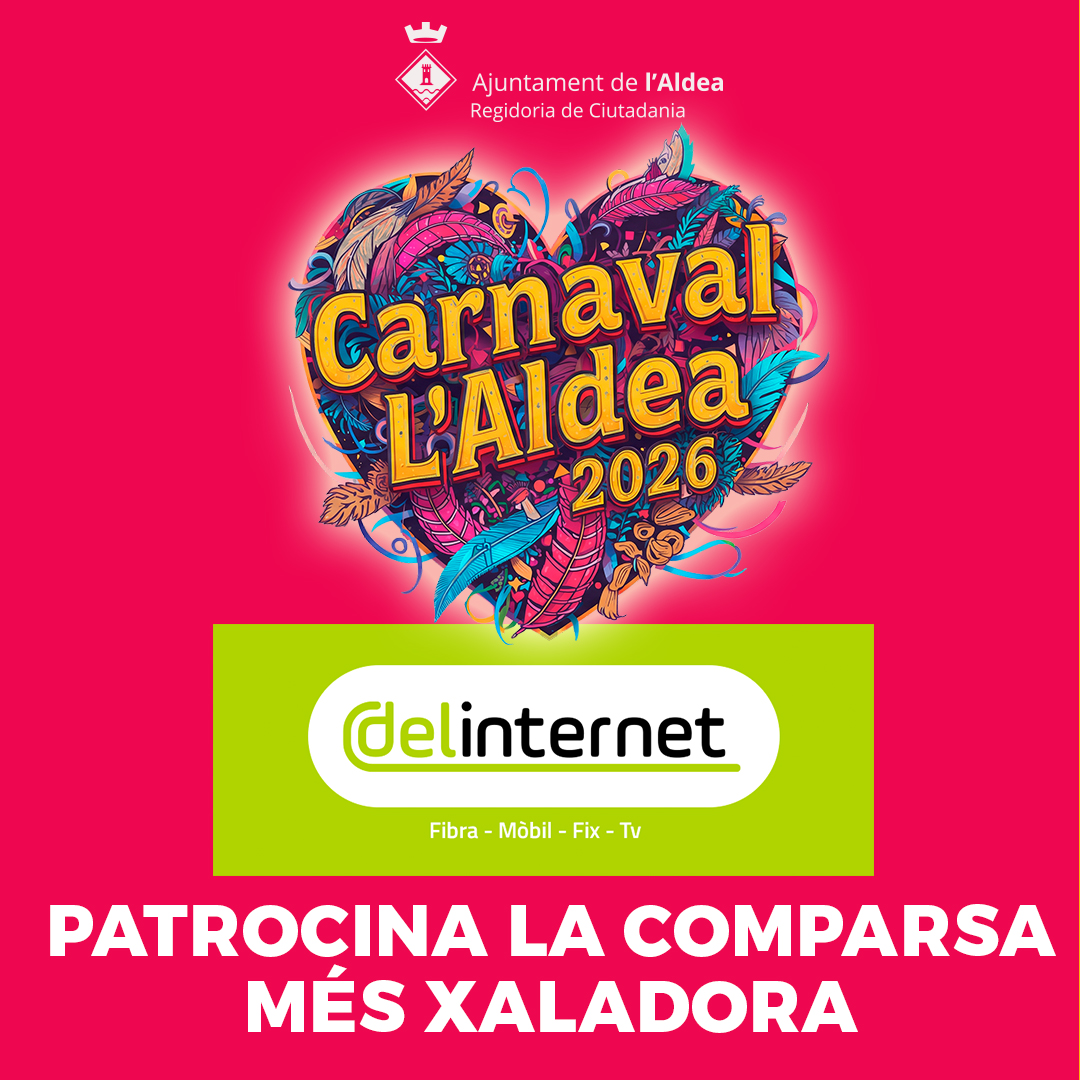 Delinternet patrocina un dels premis del Carnaval de l’Aldea 2026: el premi a la comparsa més xaladora, la qual rebrà un obsequi.
