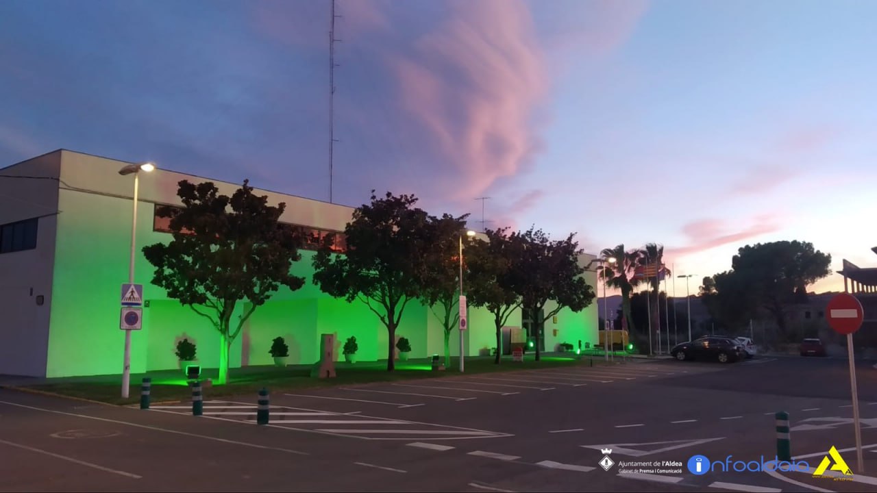 La nit de dimarts 7 d’abril la façana de l’Ajuntament de l’Aldea va lluir il·luminada de color verd amb motiu del dia Mundial de la Salut (OMS.)
