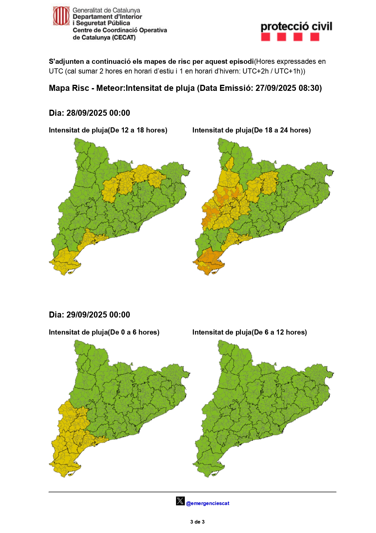 Meteorològic de Catalunya i a les afectacions que es preveu que se'n puguin derivar, correspon posar el Pla especial d'emergències per inundacions a Catalunya (INUNCAT) enfase de Prealerta.