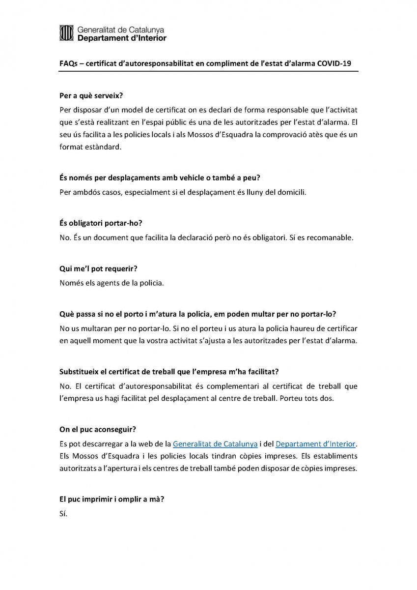 Dubtes i FAQs sobre el certificat autoresponsable estat alarma https://bit.ly/2Uv6VU2